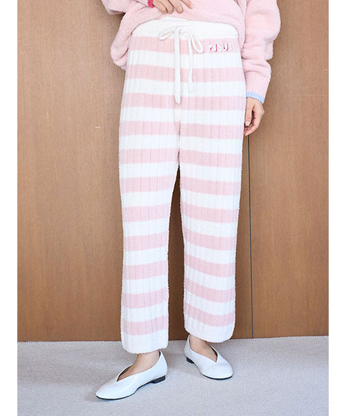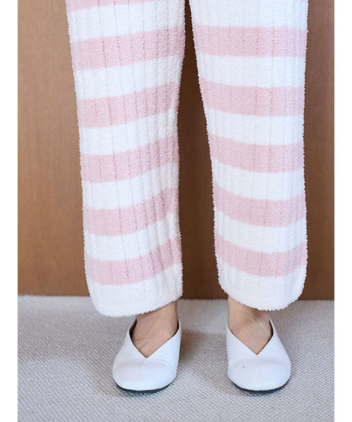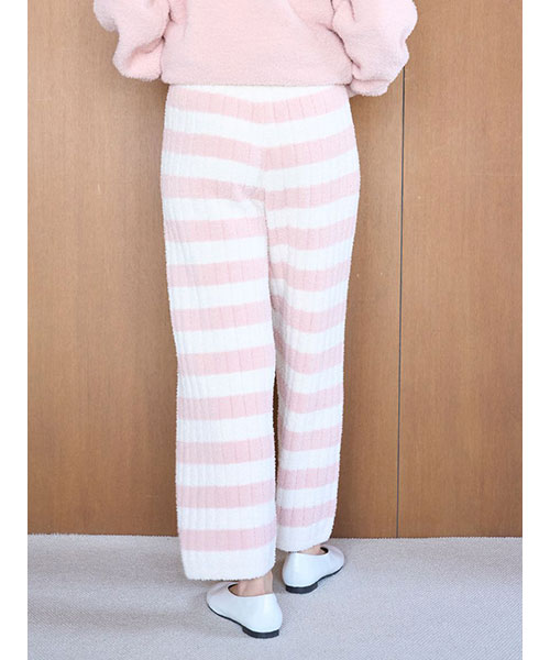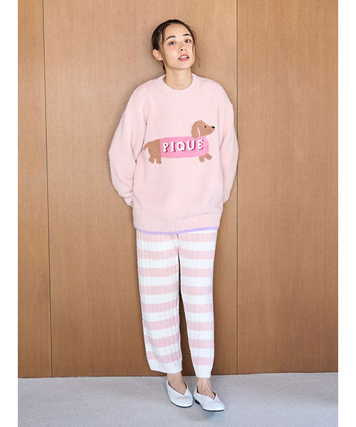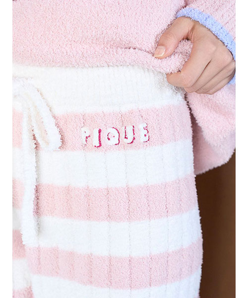 もっちりした肌触りの‘ベビモコ’素材を太めのリブで仕上げた、心地良い風合いの2色ボーダーロングパンツです。腰元に添えたカラフルなPIQUEのサガラ刺繍がキャッチーなポイント。定番のボーダー柄なので幅広いトップスと合わせてお楽しみいただけます。色は柔らかなピンクと落ち着いたグレーの2色展開。同時期に展開するベビモコダックスシリーズのカーディガンを合わせるのもおすすめです。