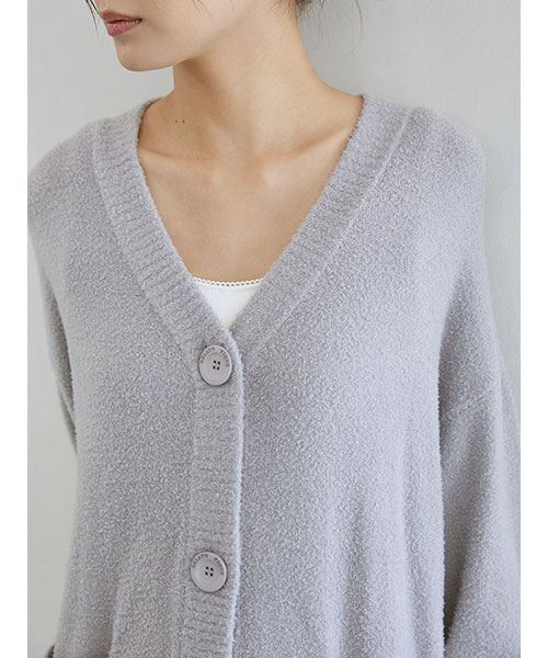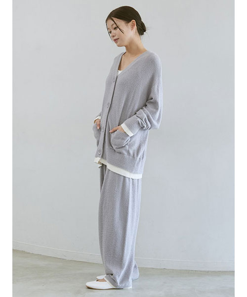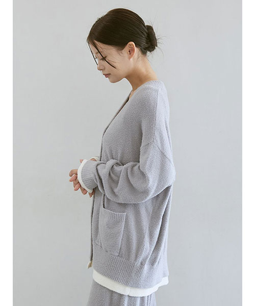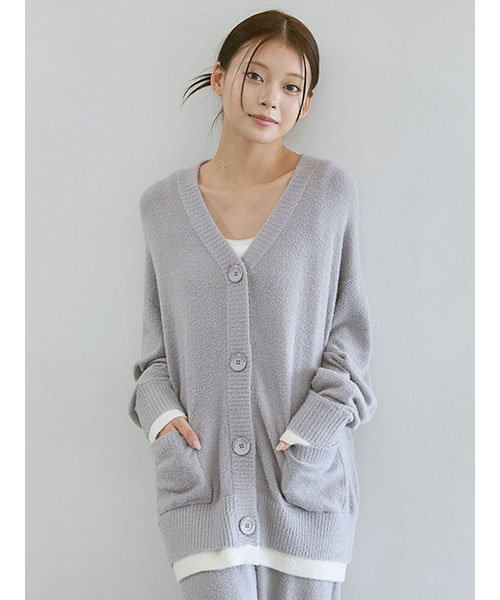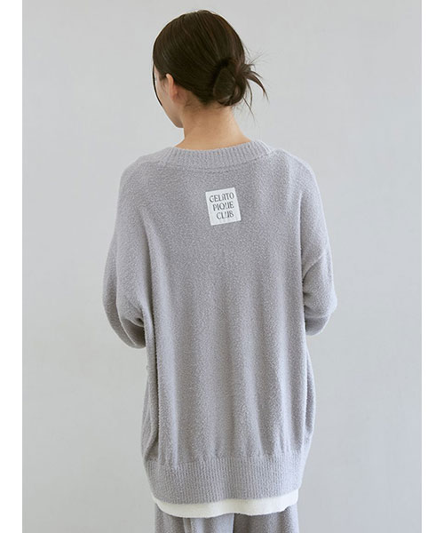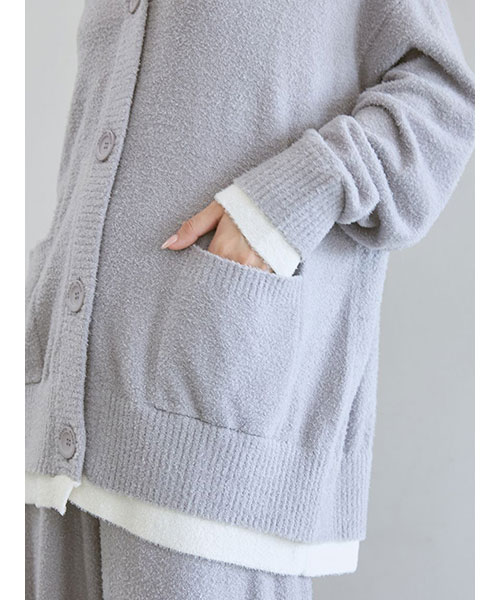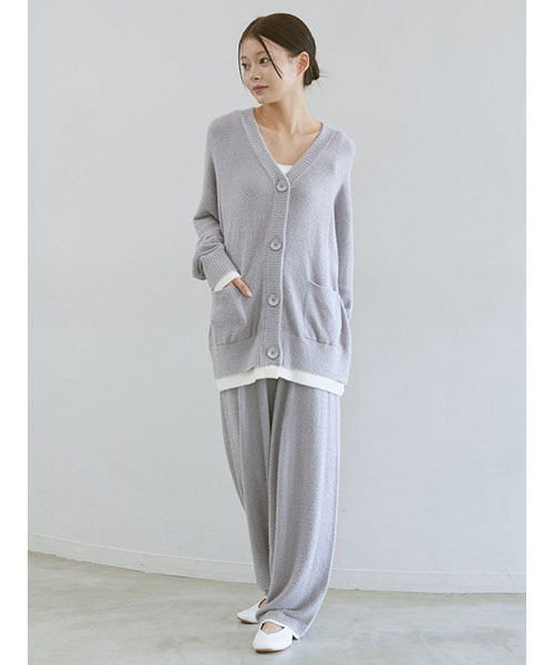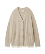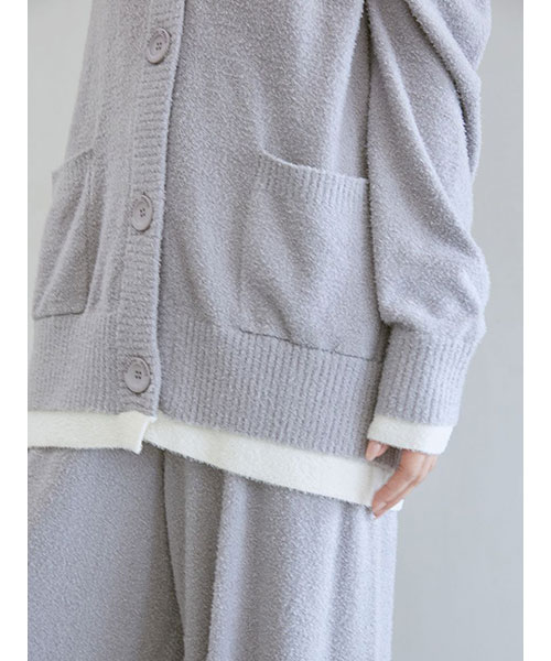 熱を逃しにくい‘ホットスムーズィー’を使用した、レイヤード風デザインのなめらかなニットシリーズです。ややオーバーサイズ気味に着こなしたい、ゆったりとしたVネックカーディガン。袖口や裾に重ね着風のディテールを入れ、背中にオリジナルネームをあしらっています。色味を抑えたベーシックなカラーリングで、大人のこなれたおしゃれ感を醸し出せるアイテムです。色はベージュとグレーの2色展開。同シリーズのロングパンツや小物と合わせたり、HOMMEとのペア・コーディネートもお楽しみいただけます。
