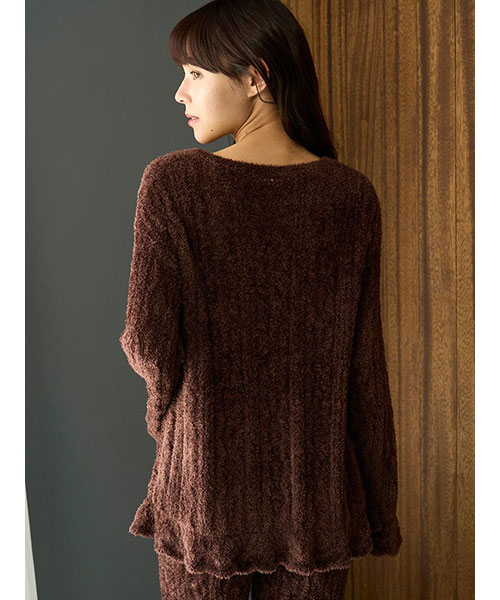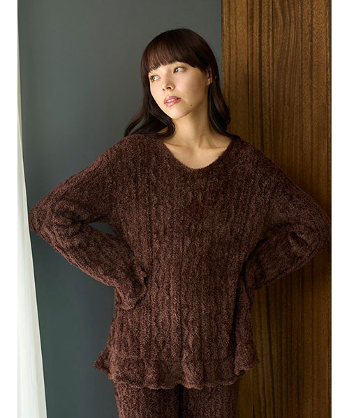 フェザー柄編みプルオーバー