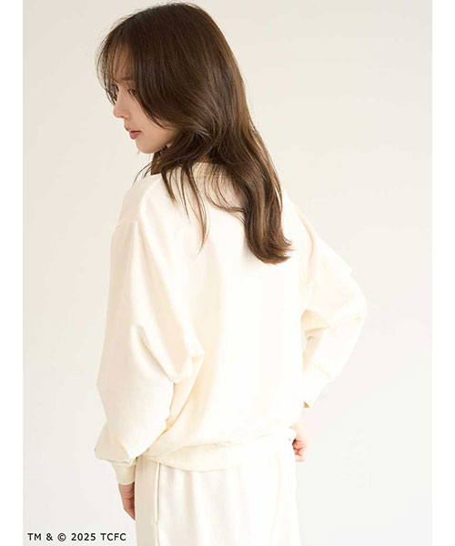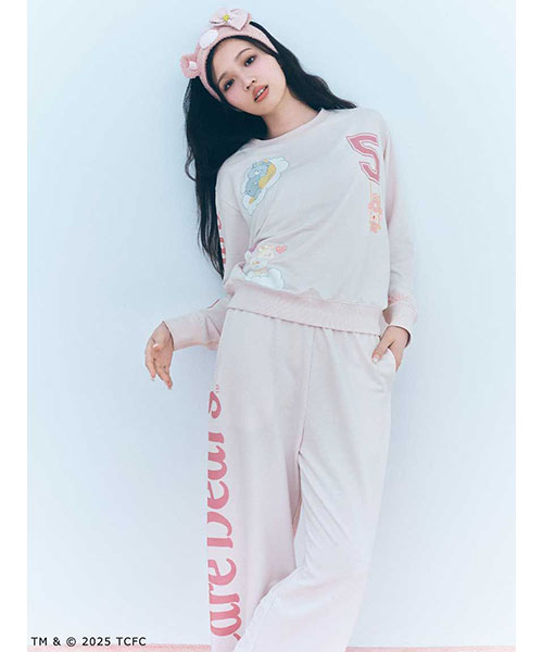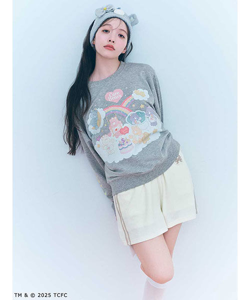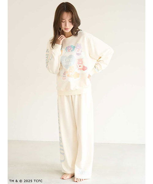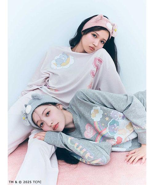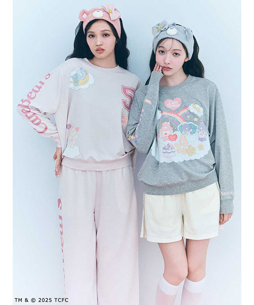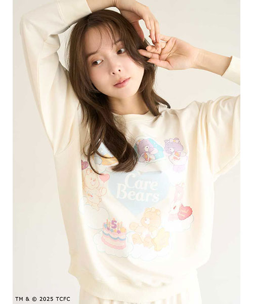 5周年のバースデーを祝うケアベアたちのプリントを入れた、柔らかなスウェットのセットアップです。