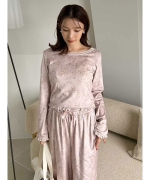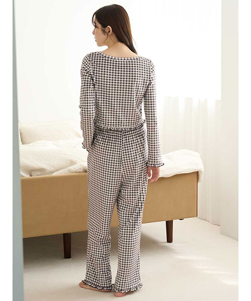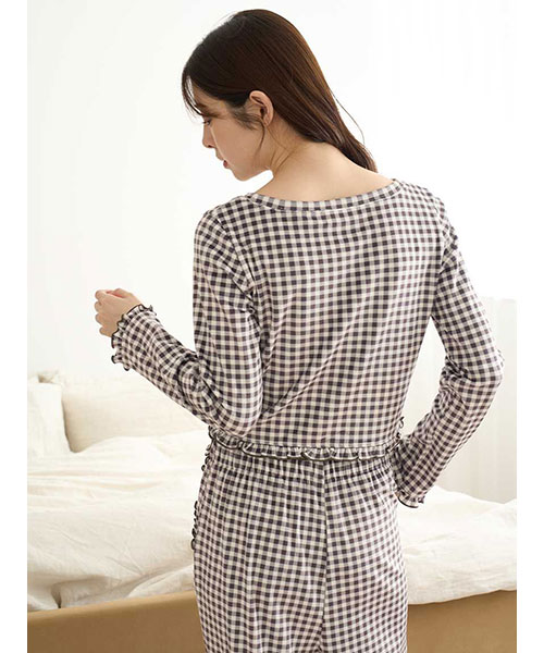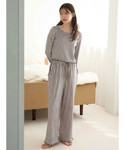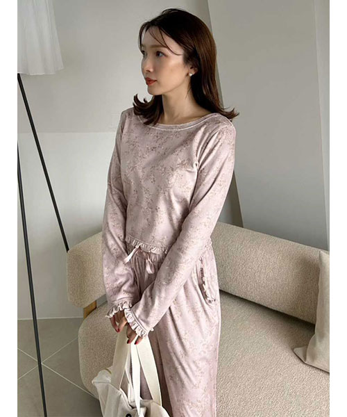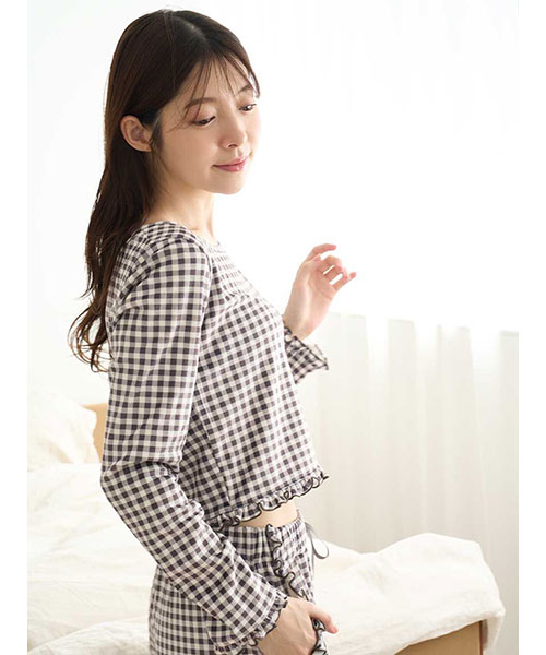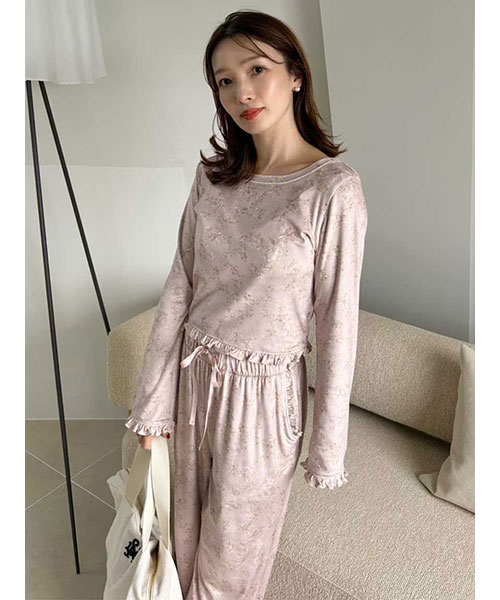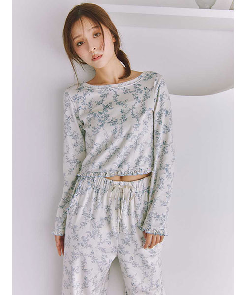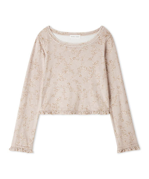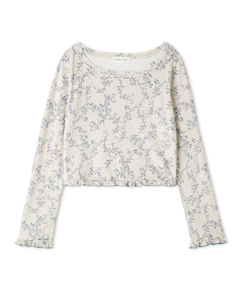 裾や袖口に入れたメローフリルがロマンティックなロングTシャツ。