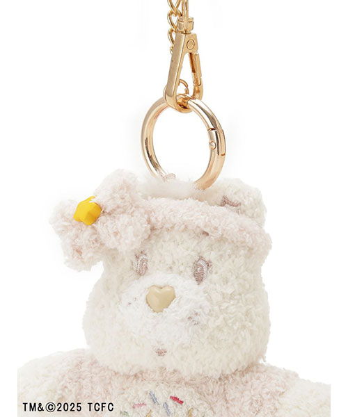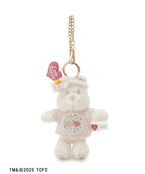 もこもこな手触りのニットで仕上げた、5匹のケアベアたちのぬいぐるみキーチャームです。