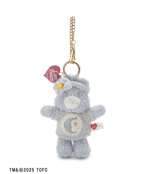 もこもこな手触りのニットで仕上げた、5匹のケアベアたちのぬいぐるみキーチャームです。