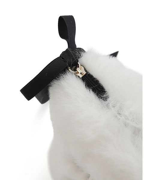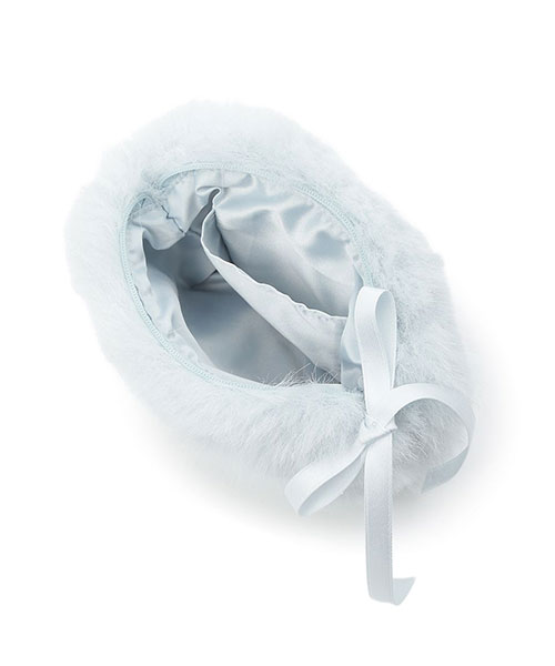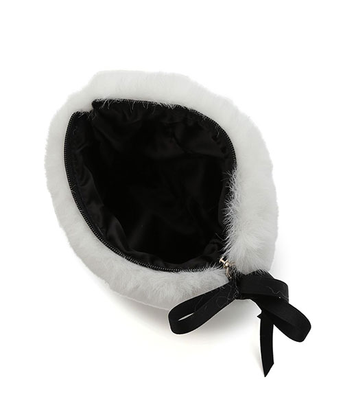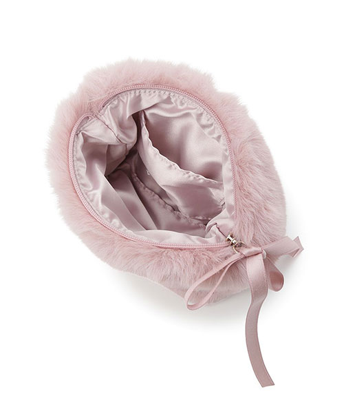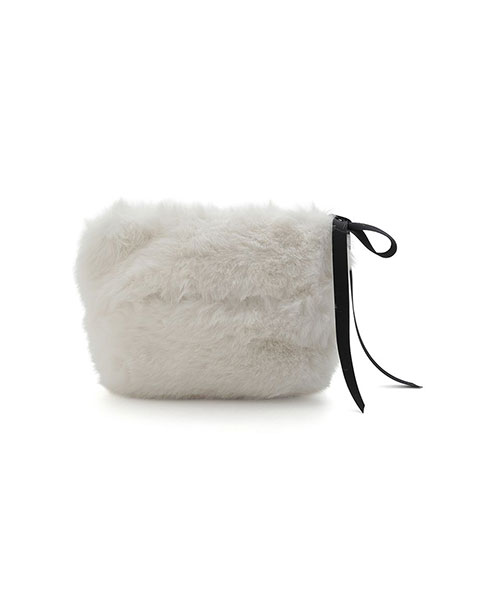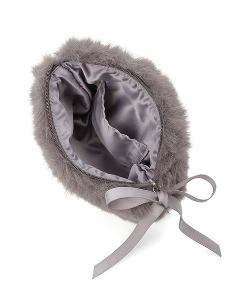ファスナーにマットなサテンリボンをあしらった、ふわふわな手触りのファーポーチ。
