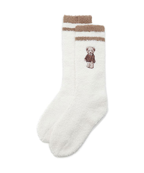 2本のラインジャガードがスクールテイスト醸し出す、ベア刺繍入りのソックス。