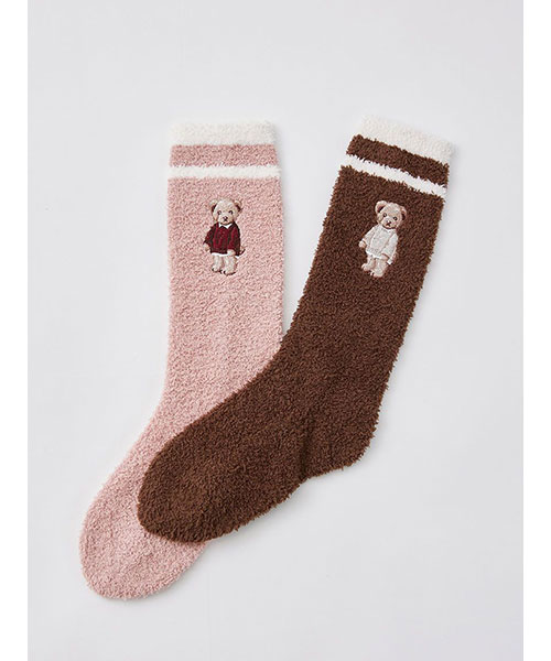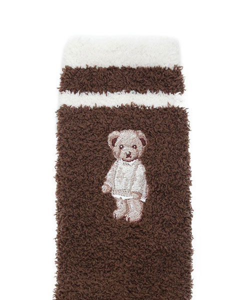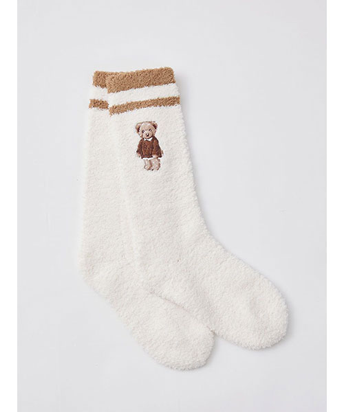 2本のラインジャガードがスクールテイスト醸し出す、ベア刺繍入りのソックス。
