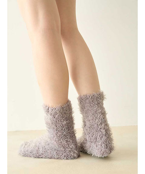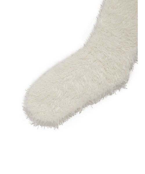 シャギーの雪のようにふわふわとした存在感で足元にアクセントを添えるルームソックス。