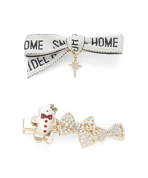 ホリデーベアシリーズのニットウェアとリンクした、クリスマスならではの特別感で仕上げたヘアピンセットです。