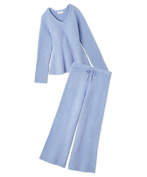 ふっくらとした起毛感のある温かいニットを使用した、ペプラムデザインのセットアップです。