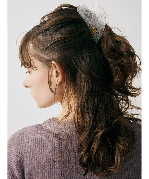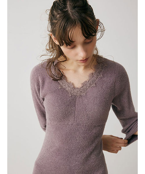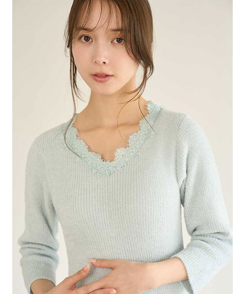 定番のVネックにレースをあしらい、フェミニンなニュアンスを添えました。