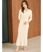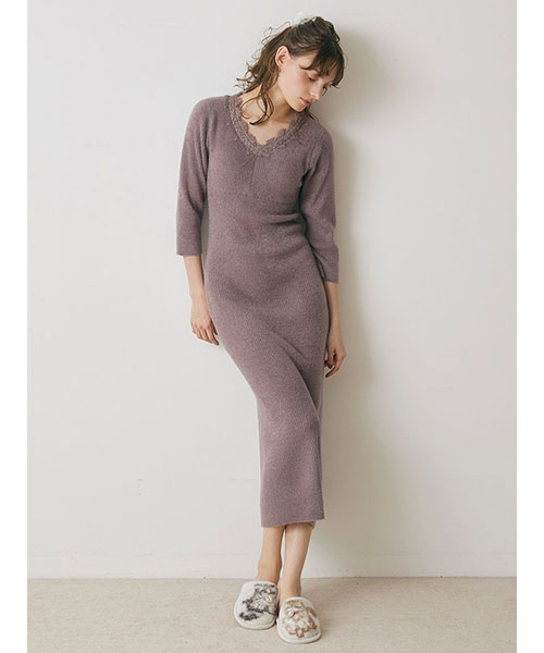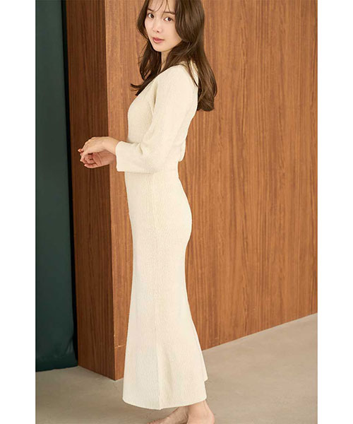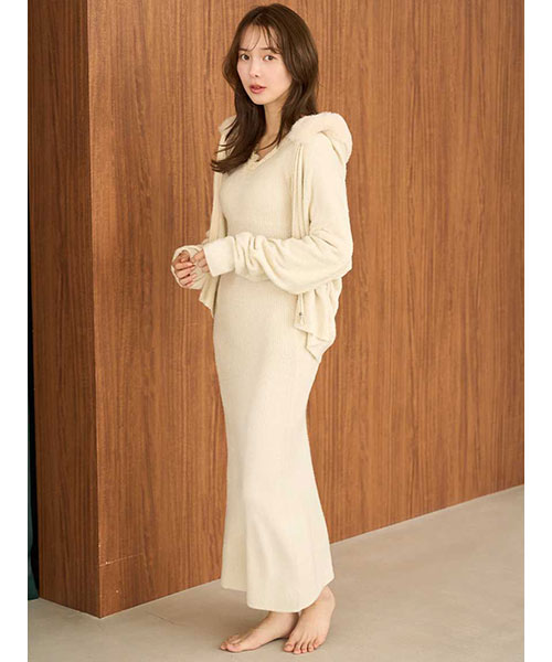 肌にとろけるような着心地に癒される、長袖のリブニットワンピース。