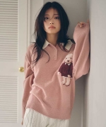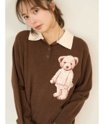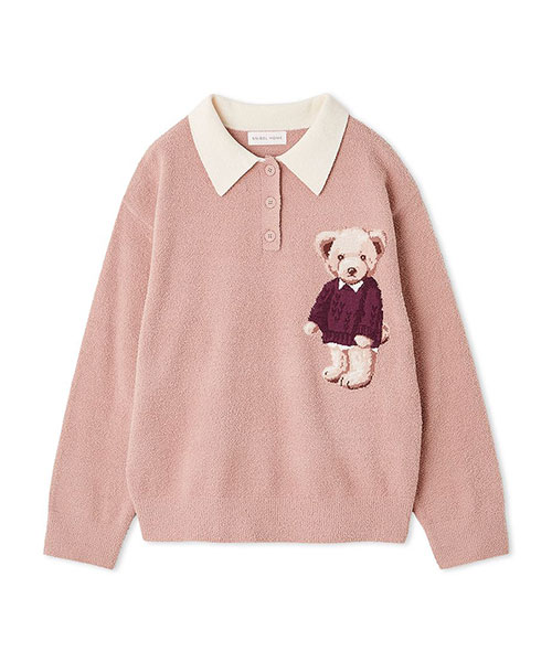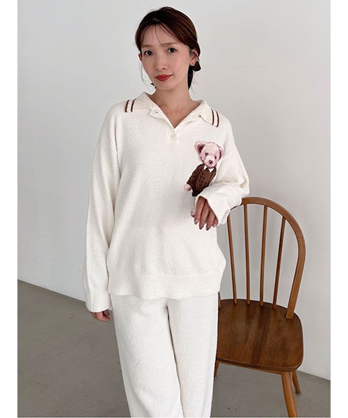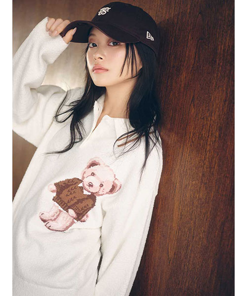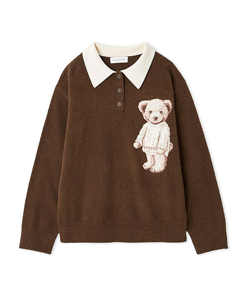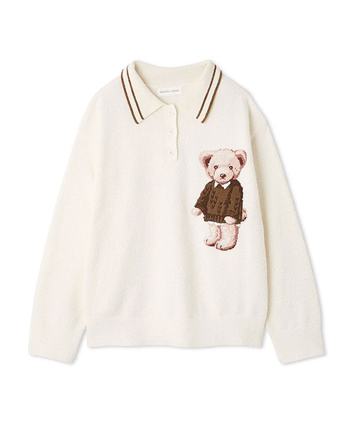 この秋旬のゆったりとしたニットポロシャツに、ベアの絵柄を大きくあしらいました。