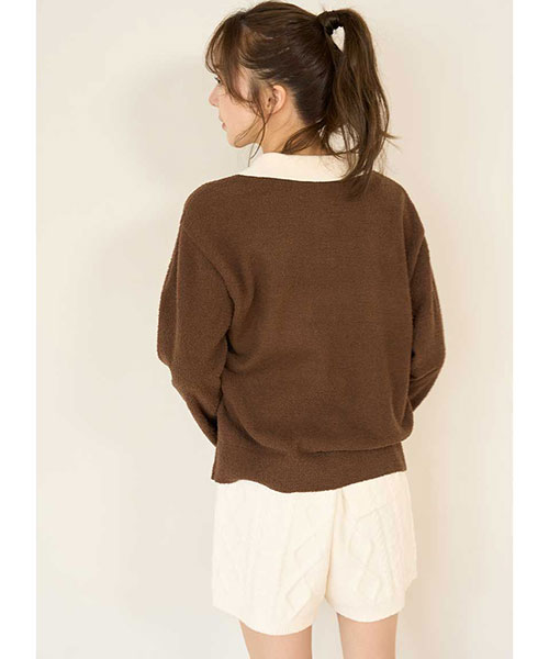 配色orラインデザインが入った襟元と、SNIDEL HOMEのロゴ入りボタンがポイントです。