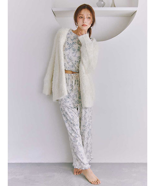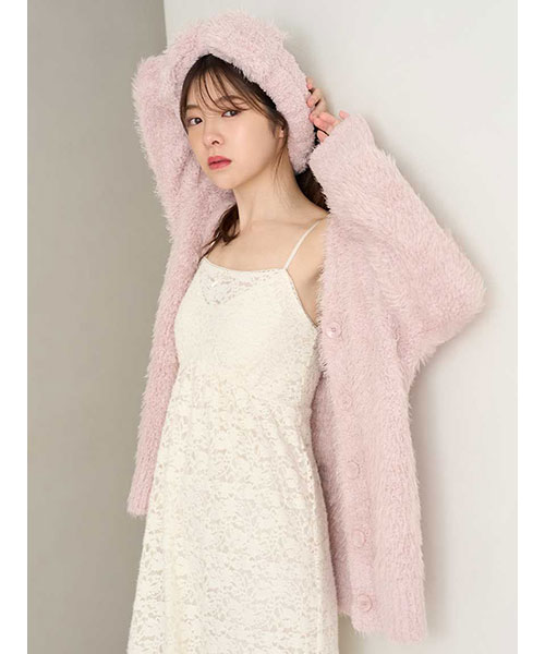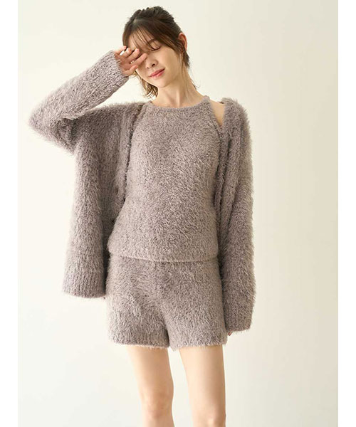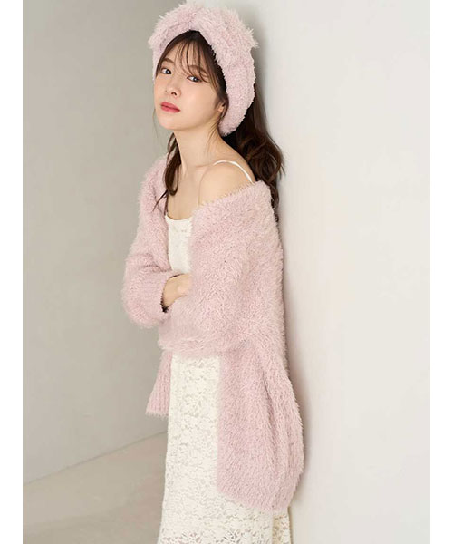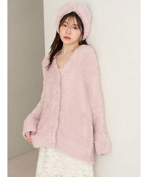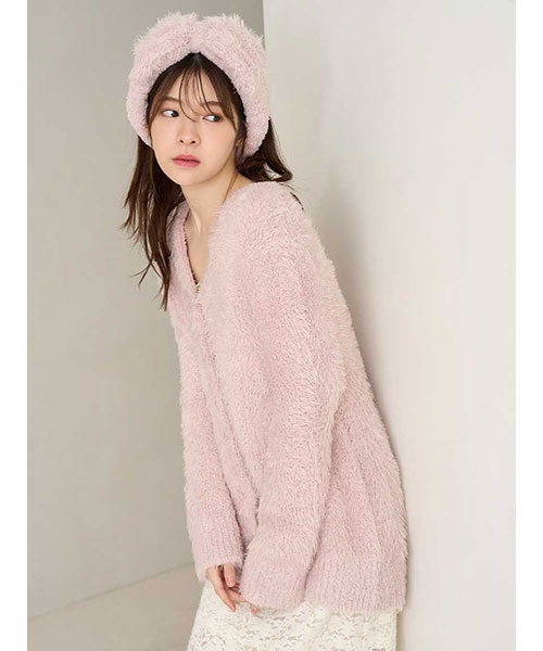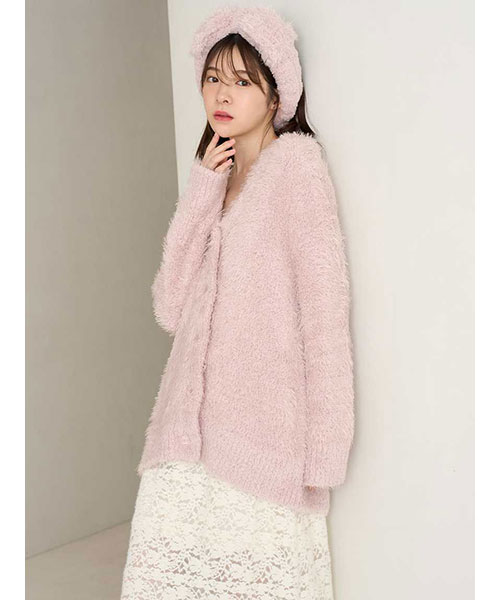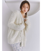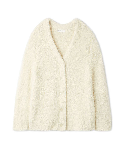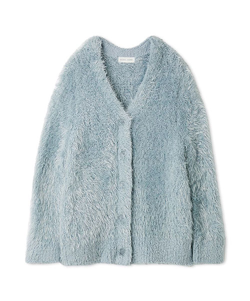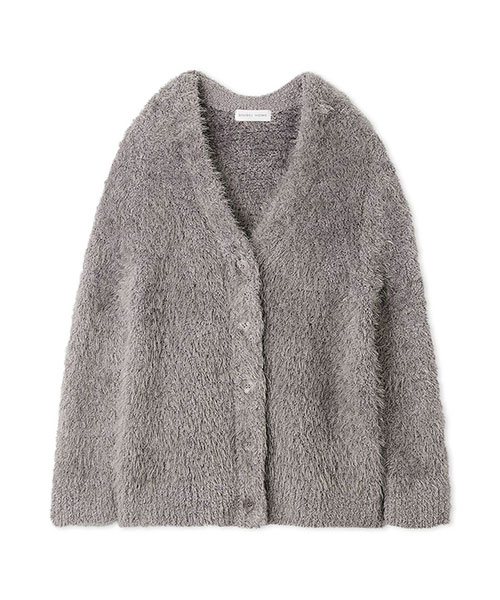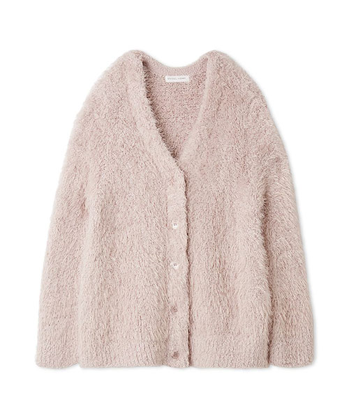 シャギーの雪のようにふわふわとした存在感が引き立つ、ベーシックなシルエットのVネックカーディガン。