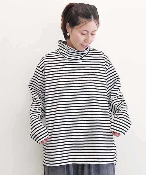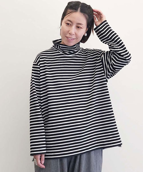 微強撚綿天竺 タートルネック 長袖カットソー