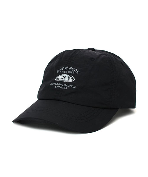 キャンプシーンでの開放感をグラフィックとタイポグラフィで表現した、6パネルのナイロンキャップ。