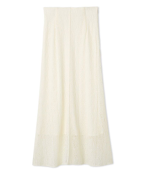 繊細なカットソーレース生地で今季らしい透け感を演出した、着心地の良さとエレガントな見た目を両立させたナロースカートがお目見え。腰回りはフィット感がありすっきりとしており、裾に向かってほんのりと広がるナローシルエットが女性らしさを引き立てるロングスカートです。伸縮性のある生地なので締め付けなくすっきりとご着用いただけます。また、ウエスト位置は裏側に太ゴムを配置しており、さっと着脱できて快適にご着用いただける一枚です。フロントの切り替えラインで縦ラインを強調し、美脚効果も抜群。裏地が付いています。共布・同色でカットレースポロブラウス(SWCT254250)もお作りしているのでセットでのご着用もおすすめ。