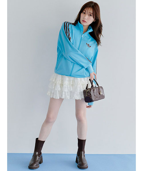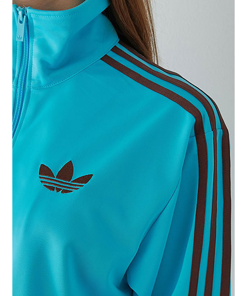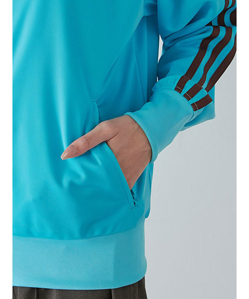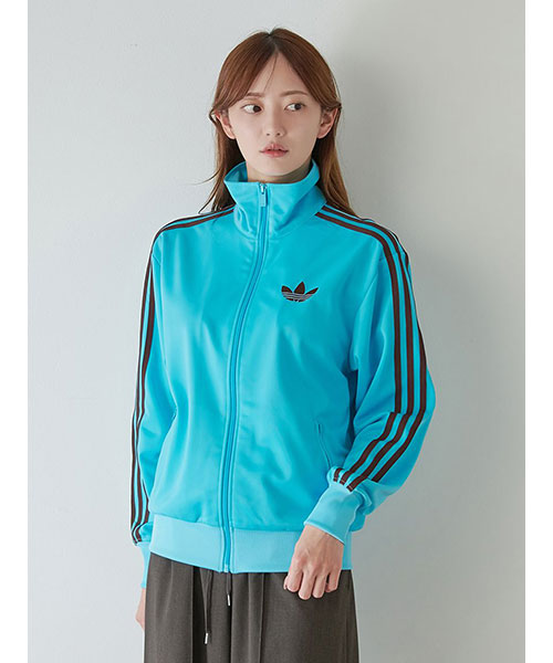 SNIDEL別注カラー(ブルー)のファオヤーバードトラックジャケットです。微光沢のある鮮やかなターコイズブルーの生地に、adidas Originals を象徴するスリーストライプスとトレフォイルロゴをトレンド感のあるブラウンカラーであしらったレトロスポーティなデザインが魅力。スタイリングに取り入れやすいコンパクトなシルエットで仕上げ、洗練さと華やかさを演出します。SNIDELのお洋服にも合わせやすいデザインです。サイドにファスナー付きのポケットが付いています。