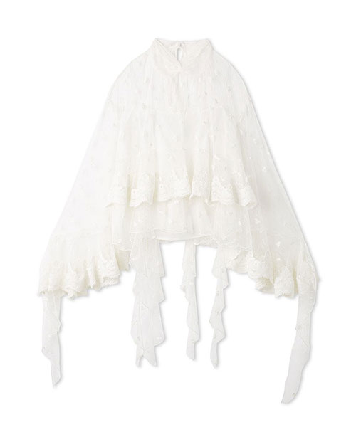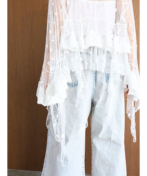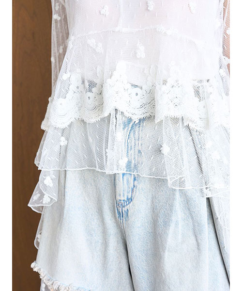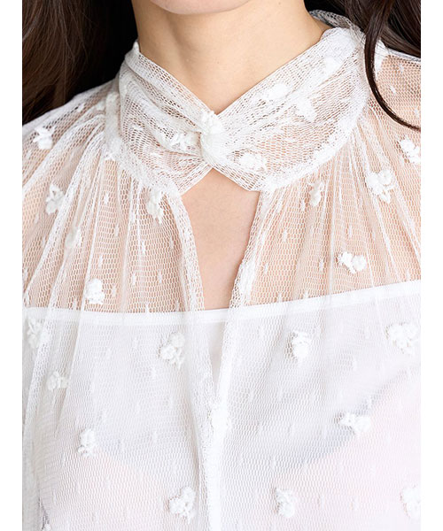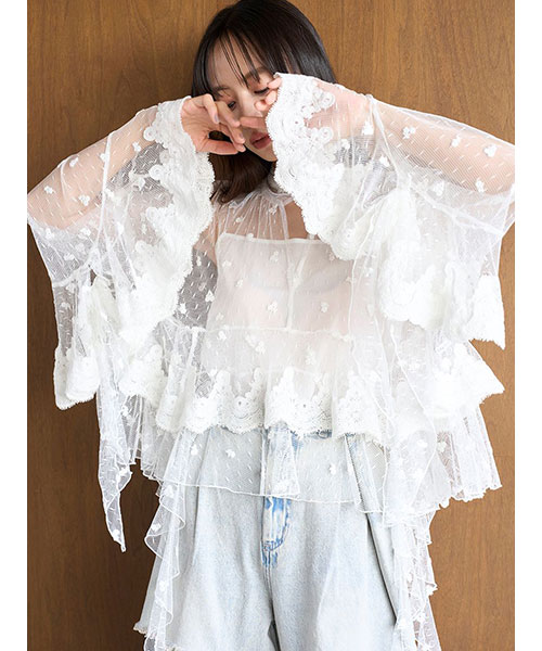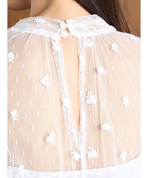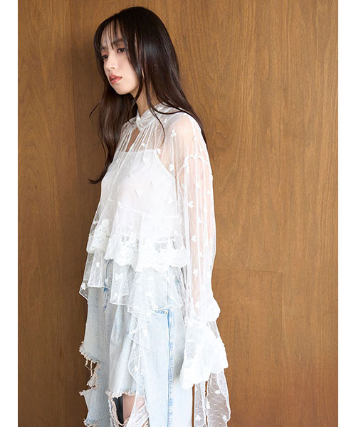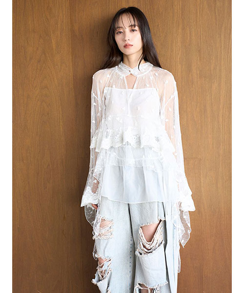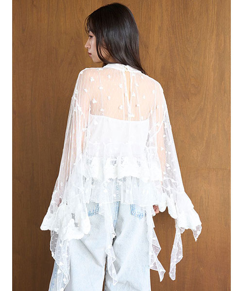 【繊細な小花柄刺繍を散りばめたチュール生地でお作りしたチュールエンブロイダリーレースブラウス】