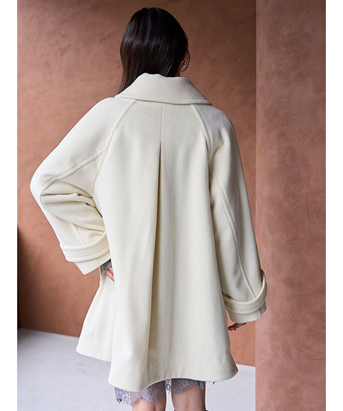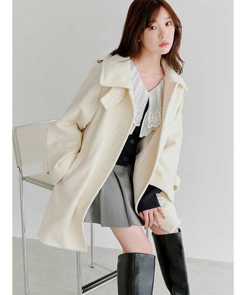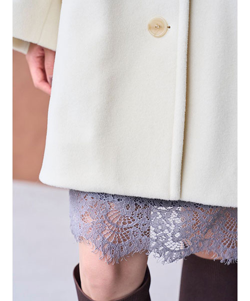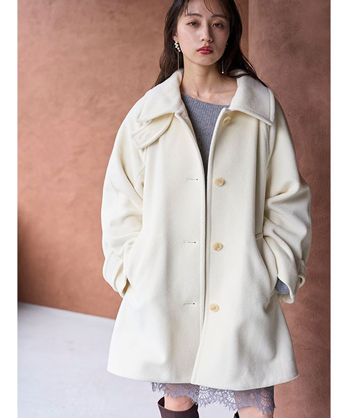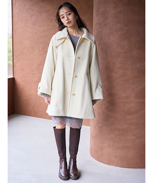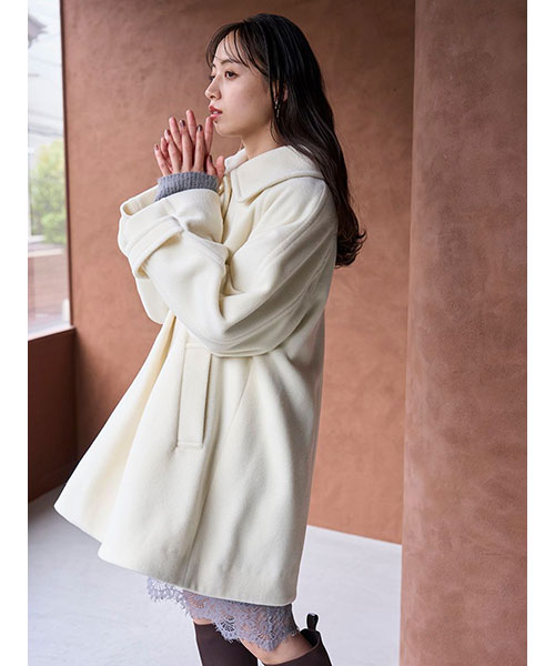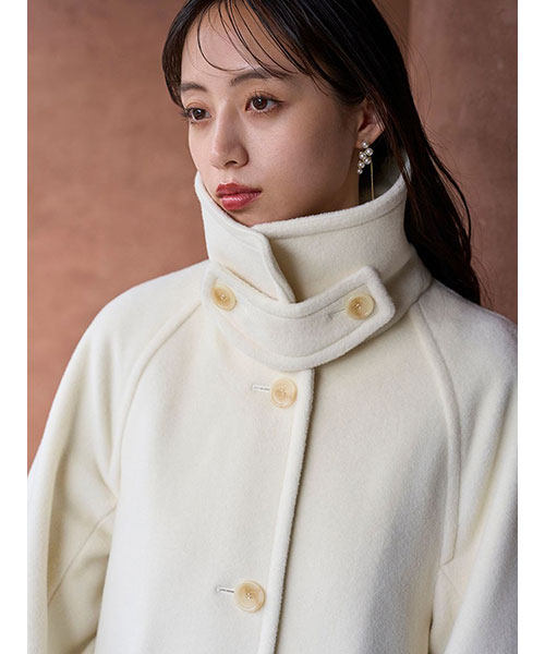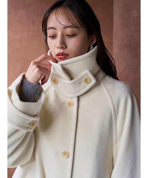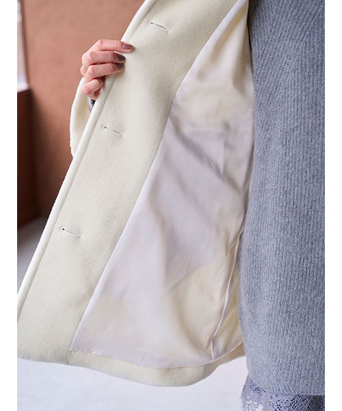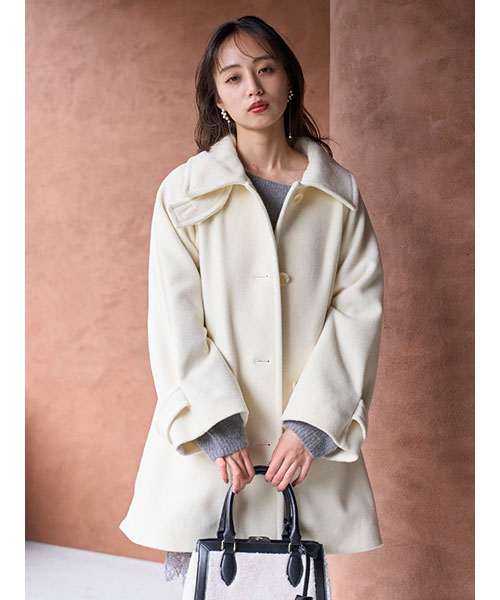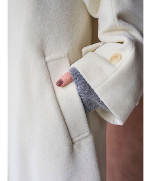 アイボリー、チャコールグレー、ライトベージュの3色展開。滑らかな触り心地と暖かさを兼ね備えたコート生地を使用。