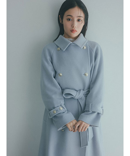 ウールとカシミヤ混の上質なコート生地を使用してお作りしたウールカシミヤスタンダードカラーロングコートがお目見え。柔らかい手触りが特徴のビーバー加工でエレガントに仕上げているのもポイントです。上半身のサイズ感にこだわり、Iライン見えのすっきりとしたシルエットになるようにデザインしています。スタンドカラーデザインですが、ステンカラー、テーラードカラーにもアレンジしてご着用もいただける3WAYです。テーラードカラーで着用した際に顔まわりが華やかに見えるよう、大きめな襟のサイズ感にもこだわりました。艶感の美しいメタルボタンを使用して上品に。共布のベルトが付いているのでシルエットにメリハリをつけて女性らしくご着用いただけます。袖口にもベルトを施し、ワンポイントに。袖口はベルトのボタンで調節いただけます。後ろ側には長めにベンツも入れて軽やかさをプラスしました。左右にポケットが付いています。裏地付きです。