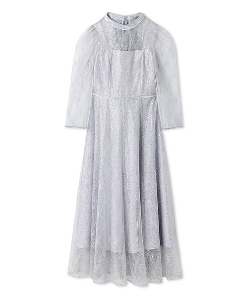 フラワー柄のロマンティックなレースに大小のスパンコール刺繍をプラスしてキラキラと輝く主役級アイテムに仕立てたスパークルレースドレスが到着。襟ぐりや袖口、高めのウエスト切り替え位置にはベロアテープを施し、アクセントに。ヴィンテージライクなベロアリボンを後ろの襟ぐりに添えたバックスタイルが印象的です。後ろウエスト位置にはゴムを入れてフィット感を出し、美脚効果も抜群に。肩口はパワーショルダーでエレガントに仕上げました。スカートはドレープを効かせたフレアシルエットで歩くとふわふわと揺れるデザインが華やかです。後ろ首元のボタンとファスナーで着脱いただけます。透け感のあるレース素材ですが、縫い付けのキャミワンピ風裏地付きで安心してご着用いただけます。