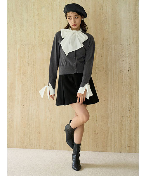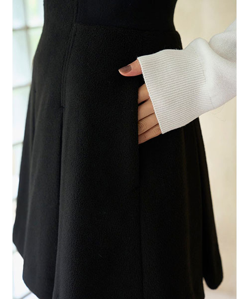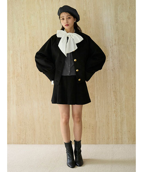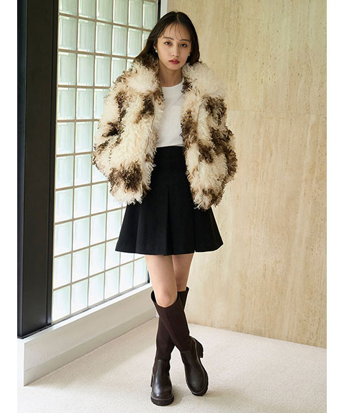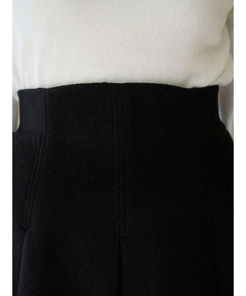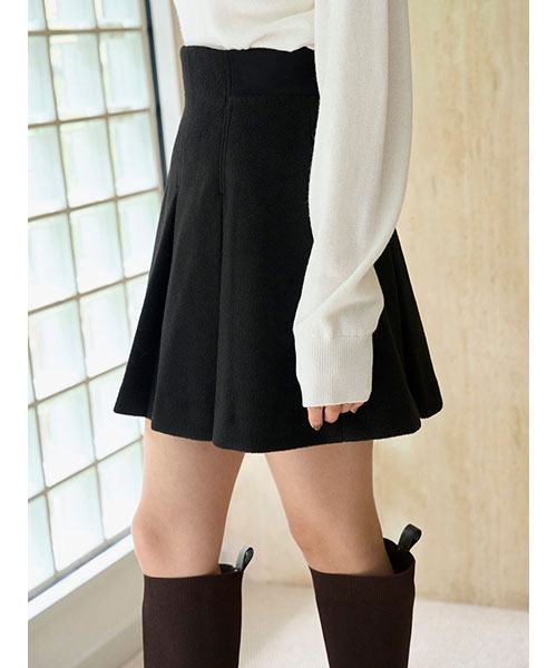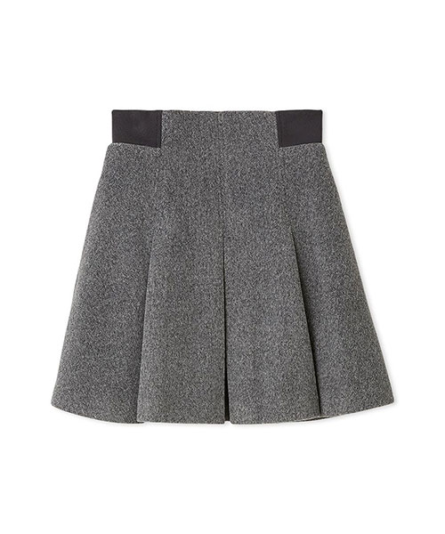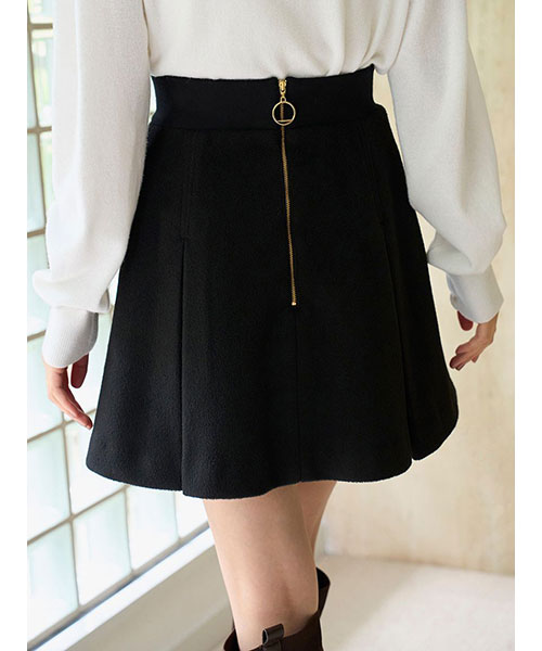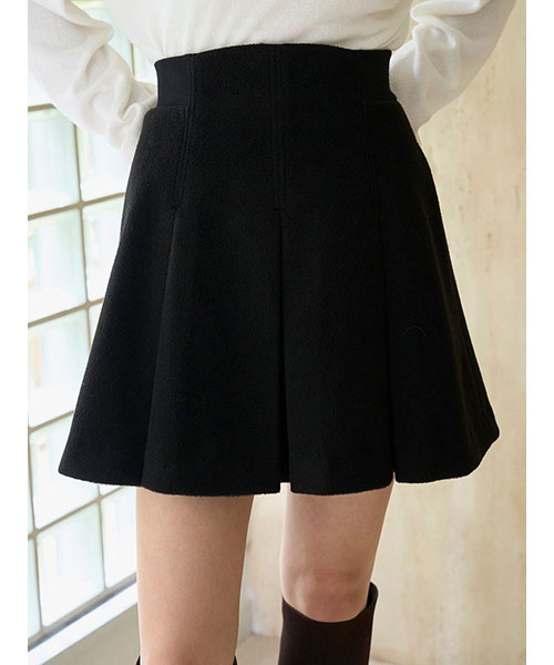 ふっくらとした肉厚な生地でお作りした立体感のあるプリーツミニスカートです。温かみのある毛足のある生地で秋冬気分を先取りできるアイテムです。ウエストベルト位置のサイドはリブ編みに切り替えてフィット感を加え、背中側にゴールドジップデザインを加えて少しモードなディティールをプラスしました。すっきりとしたシルエットで、シンプルなデザインなので、シャツにもニットにも、様々なアイテムに合わせやすいアイテム。裏地付きです。同色・同素材でお作りしているステンカラーメタルボタンジャケット(SWFJ254162)とセットアップでのご着用もおすすめです。左右にポケットがついており便利です。