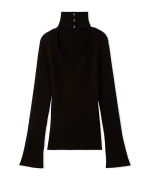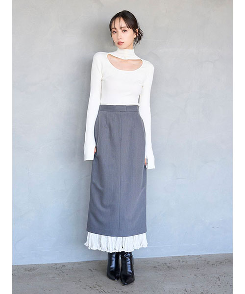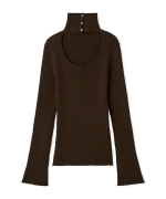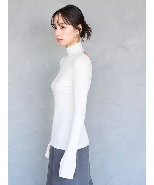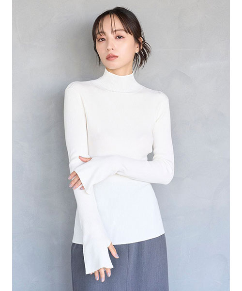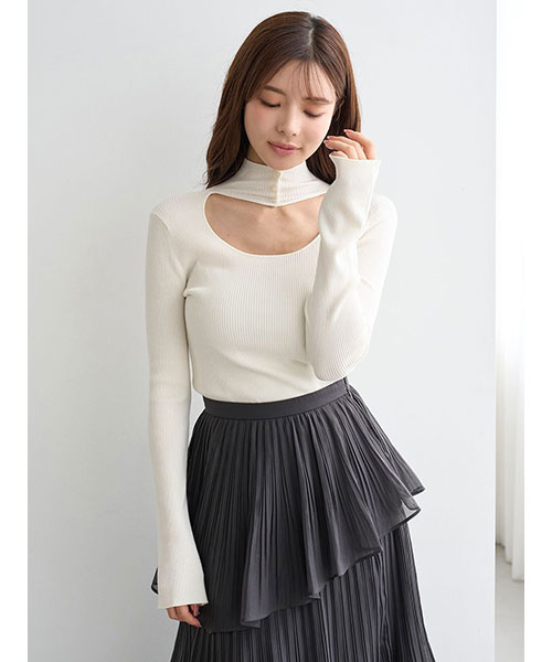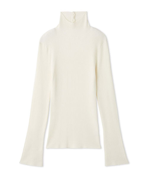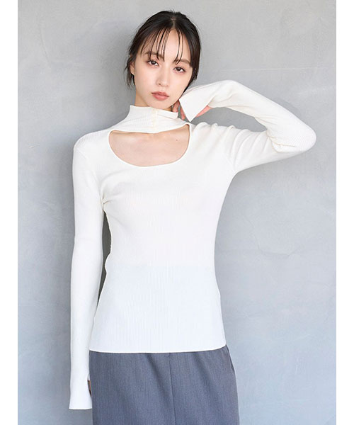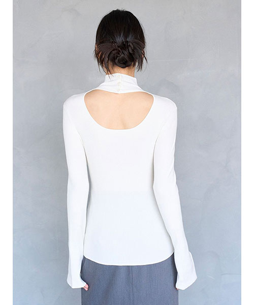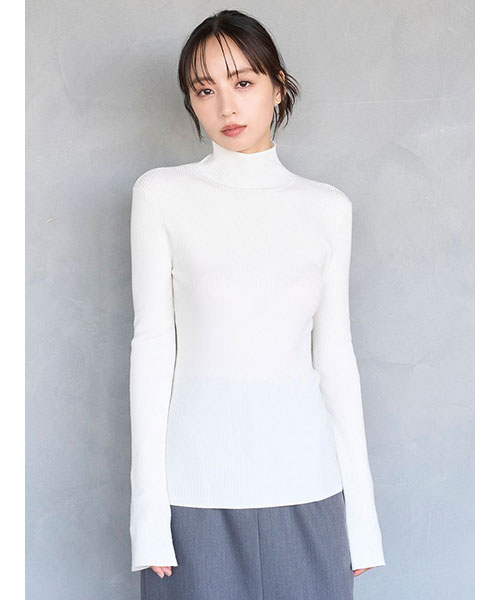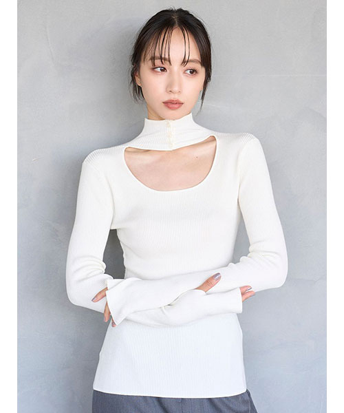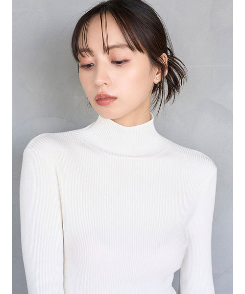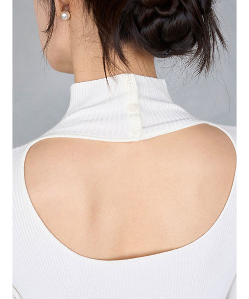 シンプルなデザインながらも個性が光る2WAYハイネックプルオーバーです。重ね着もしやすいやや薄手の細リブニットで、伸縮性もあり、身体のラインに心地よくフィットするすっきりとしたデザインです。前後で異なるデザインを楽しめる2WAY仕様。フロントはハイネックニットのデコルテ部分を大胆に開けたデザインで、首元に施された3つのボタンがさりげないアクセントになっています。背中側はシンプルなハイネックデザインです。フィンガーホール付きでトレンド感をプラスしました。ボトムスにもINしやすい少し長めの着丈で、着回し力も抜群です。同じデザインでクロップド丈のリブニット(SWNT255153)もご用意しております。着回し力も抜群でカラー展開も豊富にそろえました。ボリューミーなスカートやパンツにも、ジャンスカのインナーとしても、様々なアイテムにマッチします。