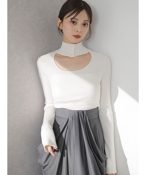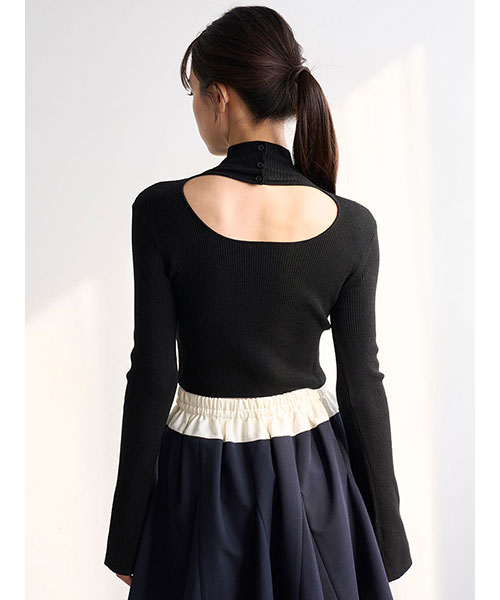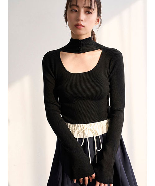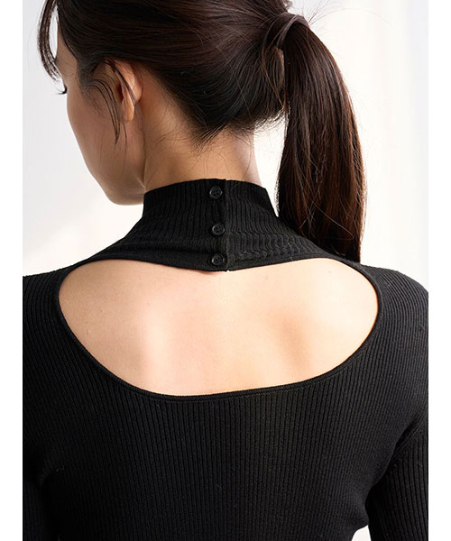 シンプルなデザインながらも個性が光る2WAYクロップド丈のハイネックプルオーバーです。クロップド丈でお作りしました。重ね着もしやすいやや薄手の細リブニットで、伸縮性もあり、身体のラインに心地よくフィットするすっきりとしたデザインです。前後で異なるデザインを楽しめる2WAY仕様。フロントはハイネックニットのデコルテ部分を大胆に開けたデザインで、首元に施された3つのボタンがさりげないアクセントになっています。背中側はシンプルなハイネックデザインです。フィンガーホール付きでトレンド感をプラスしました。同じデザインでボトムスにもインしやすい少し長めの着丈でお作りしたリブニット(SWNT255057)もご用意しております。着回し力も抜群でカラー展開も豊富にそろえました。トレンド感のあるスウェットパンツにもミニスカートにも、ジャンスカのインナーとしても、様々なアイテムにマッチします。