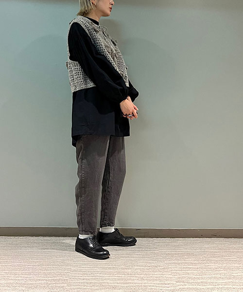 脇周りはゆったりとしていても、テーパードデザインで程よくすっきりとしたシルエットです。