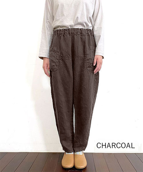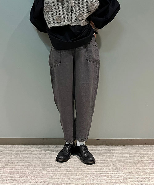 リネン100%ですので、肌離れも良く、お家の中のリラックスウェアとしてもおすすめです。