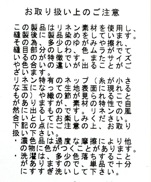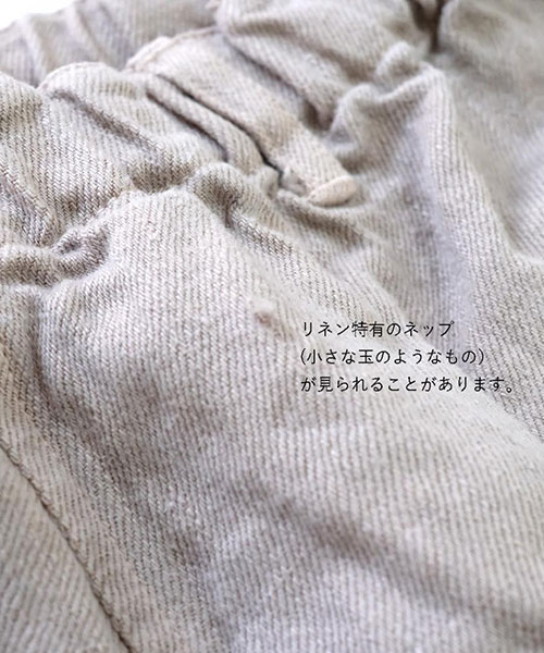 ◆こちらの製品はリネン素材を使用しております。そのためリネン特有のネップ(小さな玉のようなもの)や織の節が見られることがあります。これはリネン素材の持つ特性で自然に出るものです。リネンならではの風合いとしてお楽しみください。