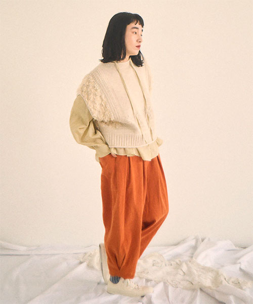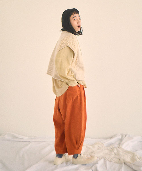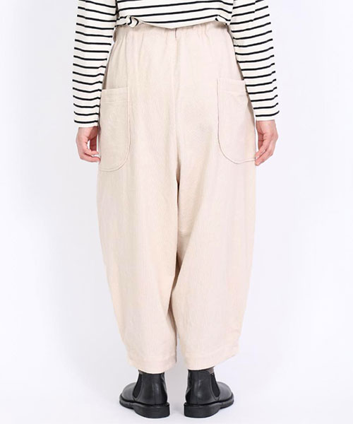 細畝のコーデュロイがカジュアル過ぎず、リラックス感のある丸みのあるコクーンシルエットと相性◎
