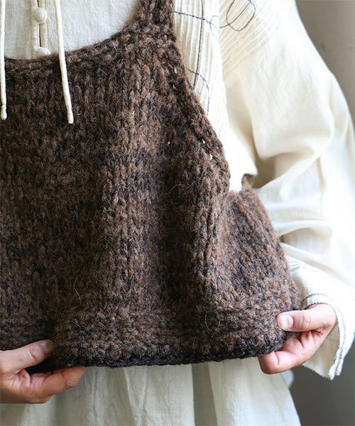 1枚1枚ロービングと呼ばれる手作業で編み上げた、表情豊かなハンドニットです。