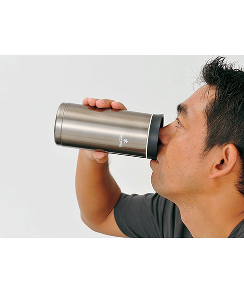 飲み物はもちろん、冷えた飲料缶(500ml)を持ち運ぶことができるステンレスボトル。キャンプ場で温かいコーヒーを飲んだり、山頂で冷えた缶ビールを楽しむことができます。保温保冷用、保冷専用、タンブラー用の3種類キャップが付属。普段使いにもオススメです。