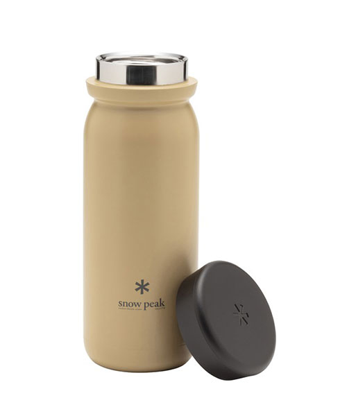 これまでのキャンプギア開発のなかで培ってきたノウハウを生かして、都市生活でも役立つボトルをつくりました。ステンレスのダブルウォール構造で、内部を真空にすることで外気の影響を遮断し、優れた保温保冷機能を発揮。タイプMシリーズは350mlと、たっぷり入れられる500mlも用意。