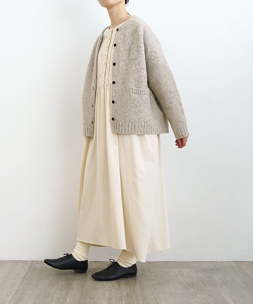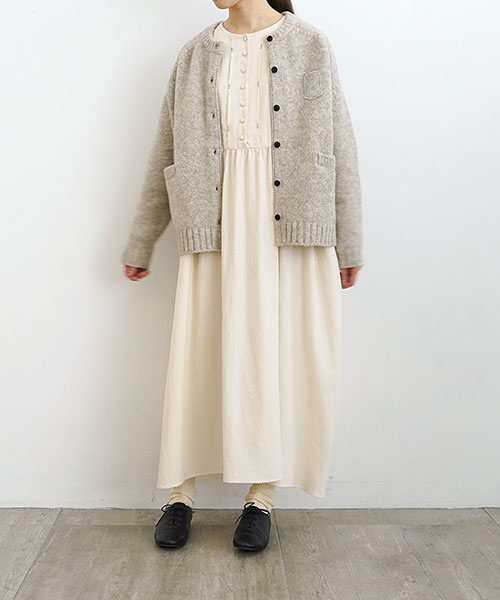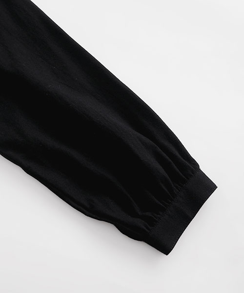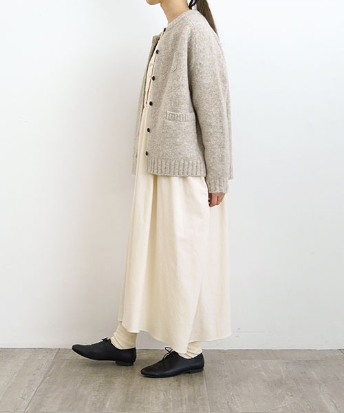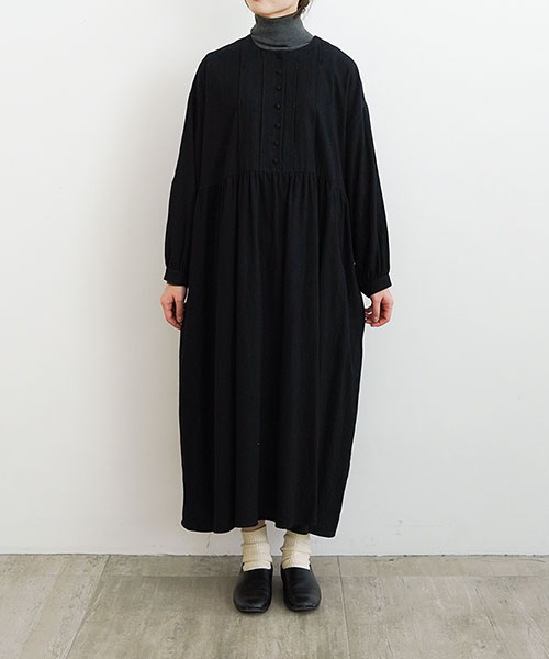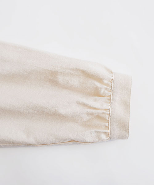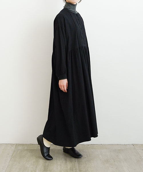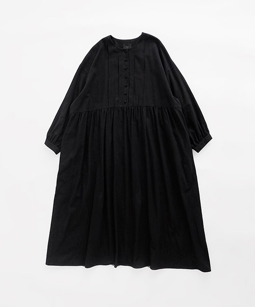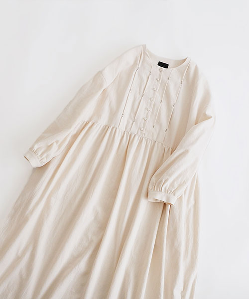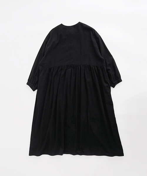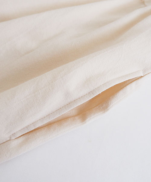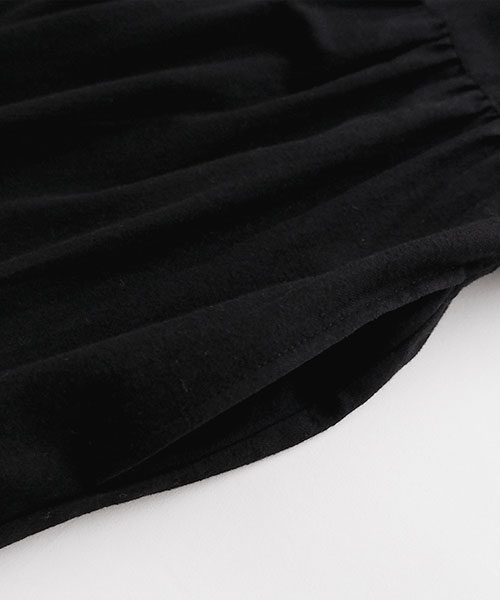ウエストの切り替えからはたっぷりとギャザーが施されており、風にふんわりなびくシルエットに。