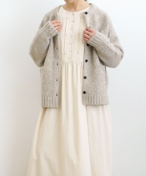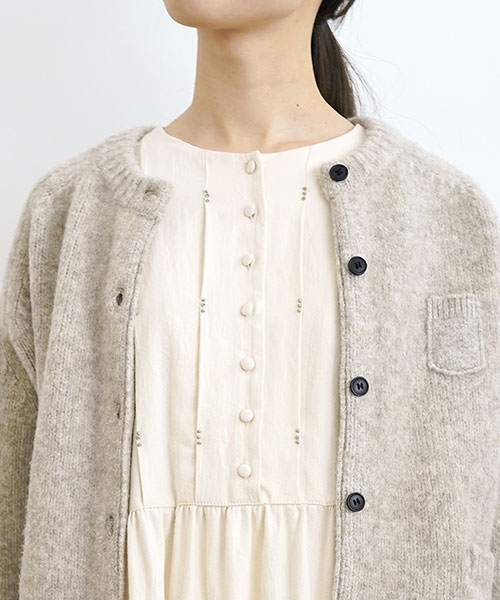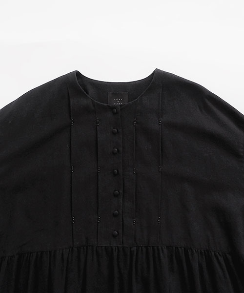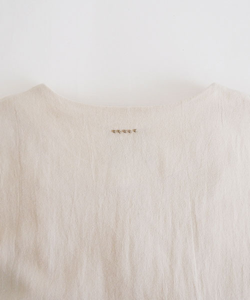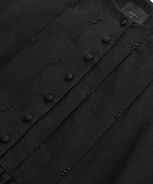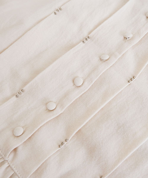 首元の後ろ側にもあしらわれたビーズが、ふとした瞬間に目に留まるときめきを添えます。