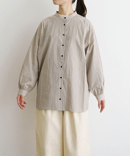 肩周りに馴染むラグランスリーブとゆとりのある身幅で、リラックスした着心地です。