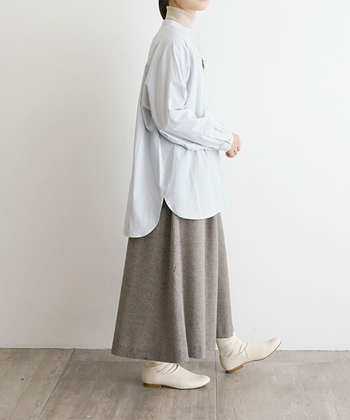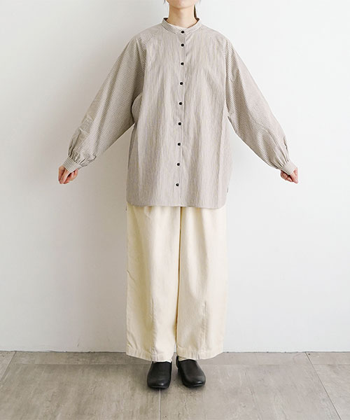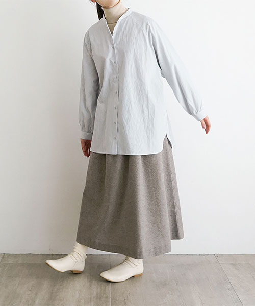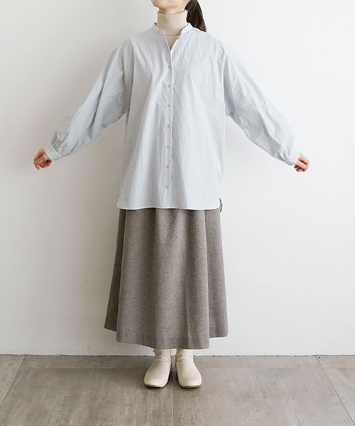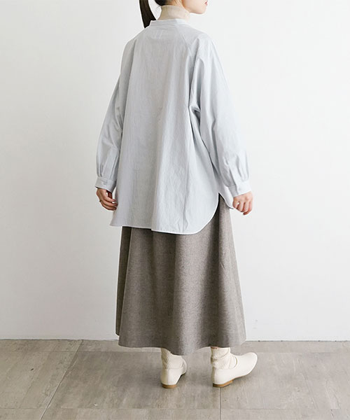 肩周りに馴染むラグランスリーブとゆとりのある身幅で、リラックスした着心地です。