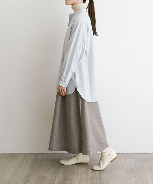 裾をのぞかせた重ね着スタイルも楽しめるミドル丈は、ヒップをカバーする安心感も◎