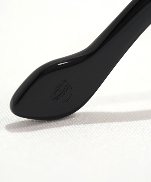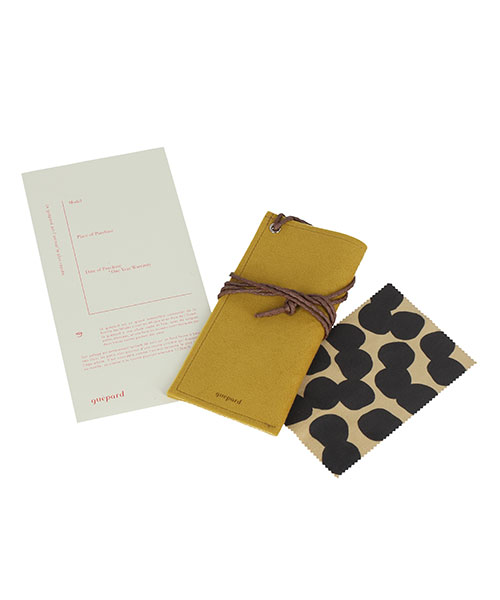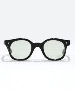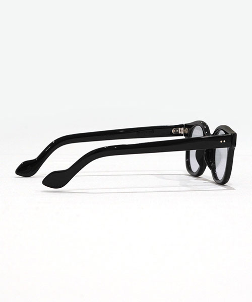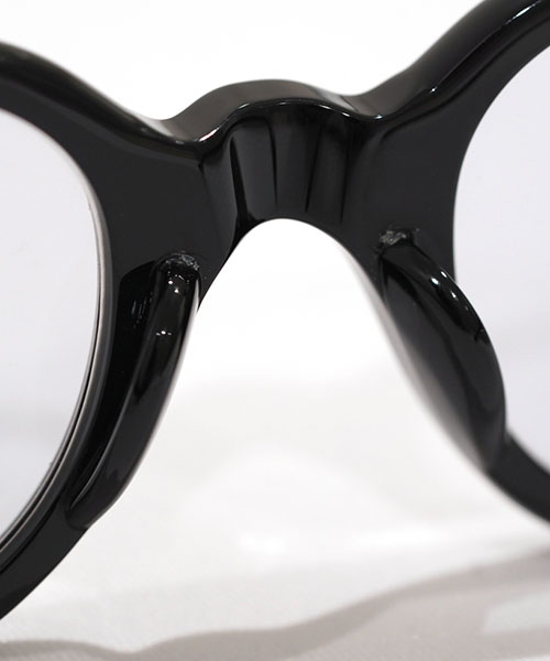 ボリュームあるリム周りのカッティングが特徴的なモデル。当時のフランスの職人技とエスプリが効いており、テンプルエンドのデザインも特徴的。